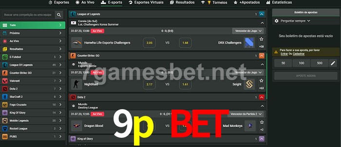 O 9p bet oferece uma grande seleção de opções de apostas em e-sports com probabilidades competitivas